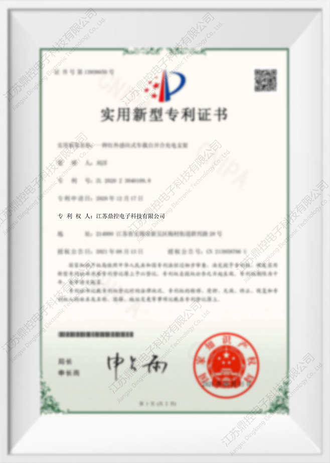 একটি ইনফ্রারেড সেন্সর-অ্যাক্টিভেটেড সেলফ-ওপেনিং এবং ক্লোজিং কার চার্জিং মাউন্টের জন্য ইউটিলিটি মডেল পেটেন্ট সার্টিফিকেট