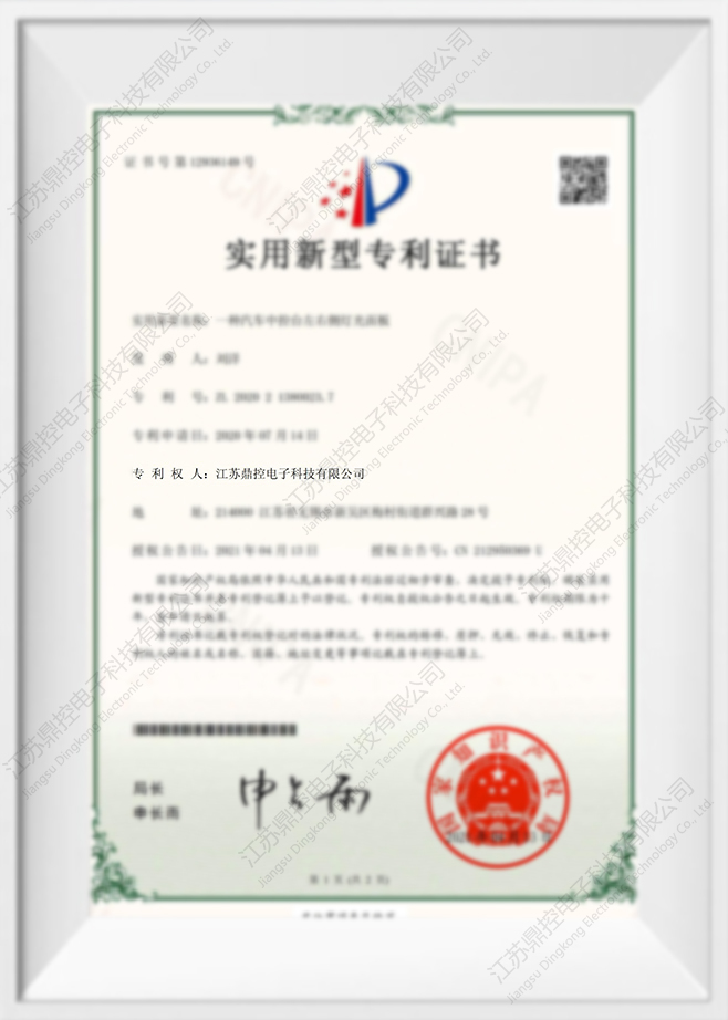 একটি কার সেন্টার কনসোলের বাম এবং ডান পাশের লাইট প্যানেলের জন্য ইউটিলিটি মডেল পেটেন্ট সার্টিফিকেট