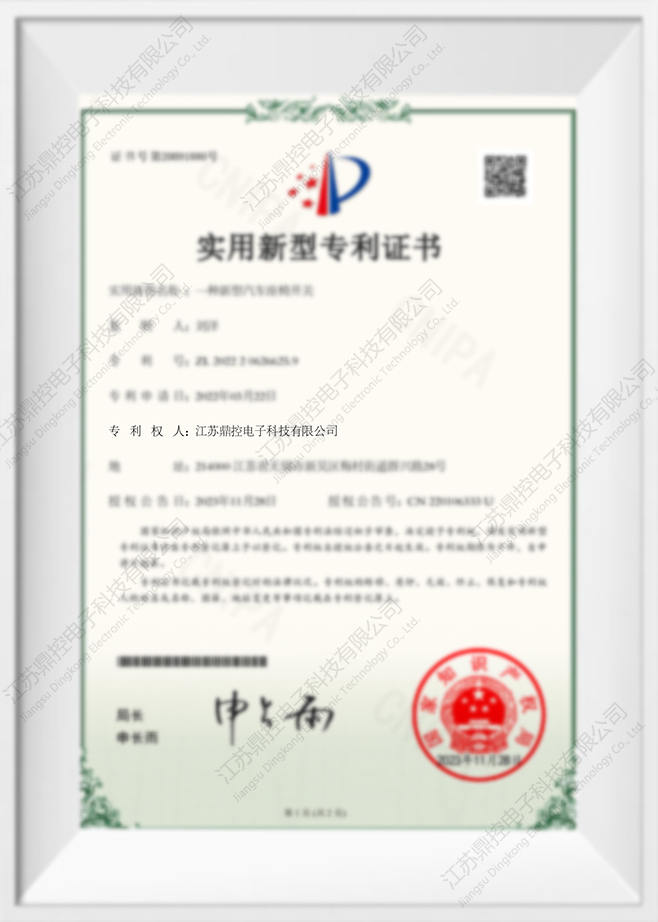 একটি নতুন ধরনের কার সিট সুইচের জন্য ইউটিলিটি মডেল পেটেন্ট সার্টিফিকেট